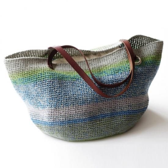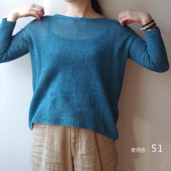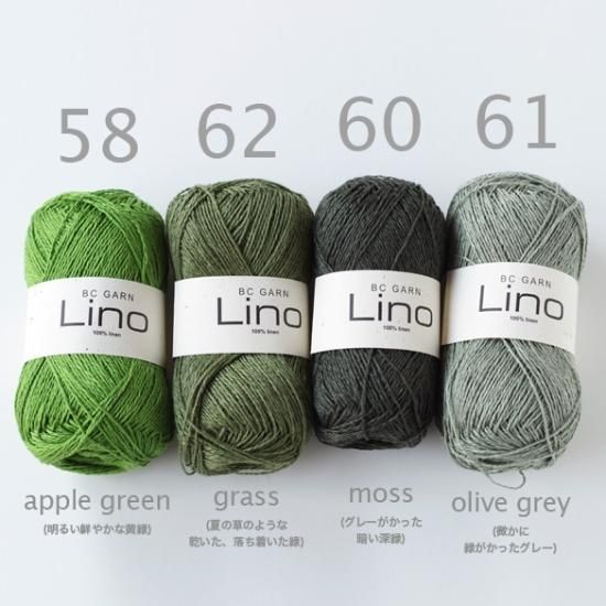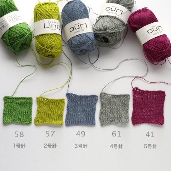 リネン100%の手編み糸。リネンならではの美しい光沢と発色の良さが魅力の糸です。水通し前は堅くハリがありますが、洗うほど使い込むほどに柔らかくなじんでいく素材です。